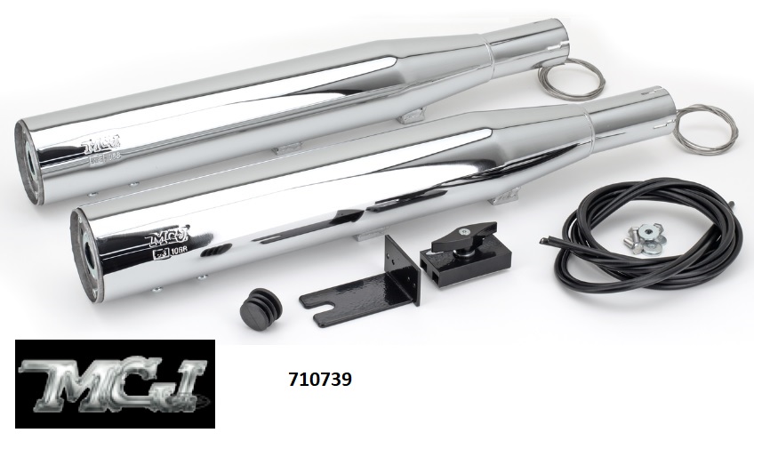 ref:710739 POTS SILENCIEUX MCJ REGLABLES HOMOLOGUES ROYAL 80 POUR TWIN CAM SOFTAIL 2000-2006 - Chrome sans embouts PAR MCJ