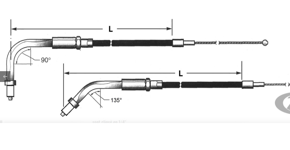 Les câbles de tirage sont clipsé en 1/4" et clipsés en 7/32" pour le retour et ils sont coudés