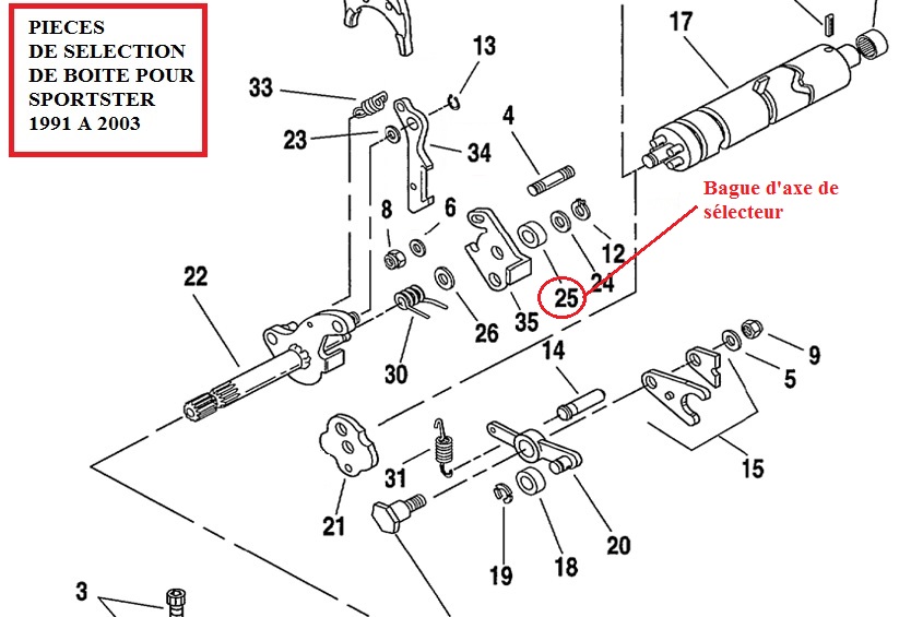 ref:750992 PIECES DE SELECTION DE BOITE POUR SPORTSTER DE 1991 A 2003 OEM 34076-89 ..."Bague d'axe de sélecteur"