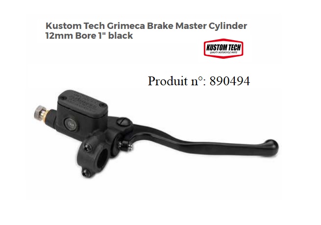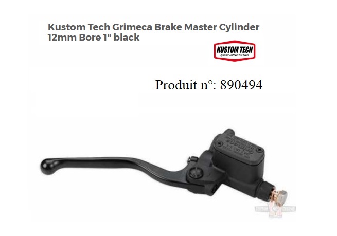 ref:890494 COMMANDE MAITRE CYLINDRE DE FREIN AVANT POUR GUIDON DE 1" GRIMECA PAR KUSTOM TECH VERSION NOIR ALESAGE 12mm OEM 20-201