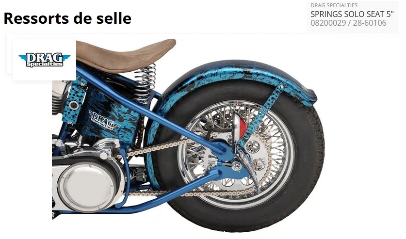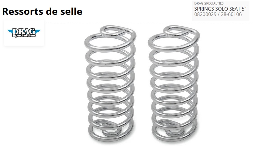 - Les ressorts custom sont entièrement chromés et boulonnés au bas de la plupart des selles solo
