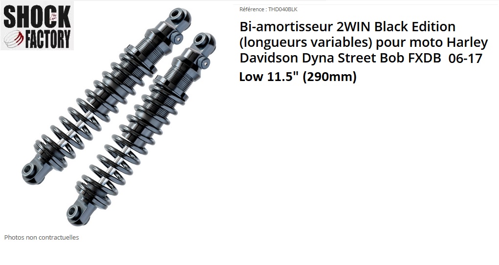 ref:THD040BLK amortisseur 2WIN bi-amortisseur Black Edition 11.5" (290mm) pour Dyna Street Bob FXDB de 2006 a 2017