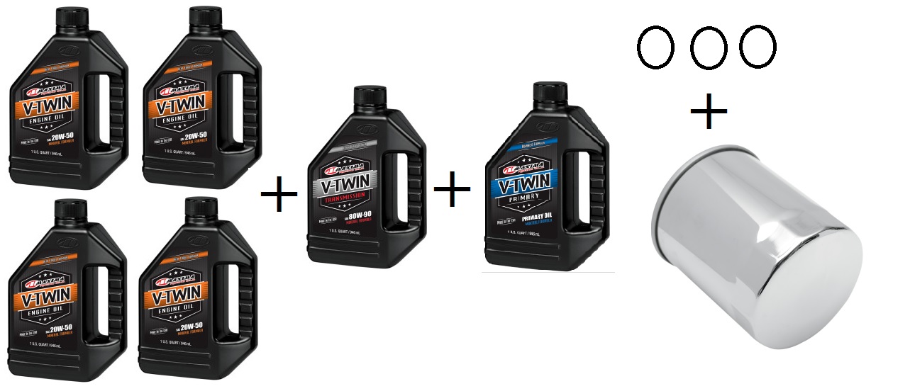 ref:TWIN1450C KIT VIDANGE MOTEUR COMPLET MINERALE TWIN CAM 1450 ET PLUS AVEC FILTRE CHROME PAR V-TWIN MAXIMA RACING OIL