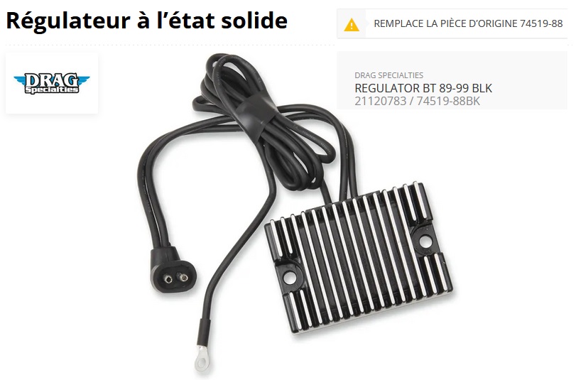 ref:2112-0783 REGULATEUR NOIR POUR BIG TWIN DE 89 A 99 TYPE oem 74519-88, 74537-93A PAR DRAG SPECIALTIES