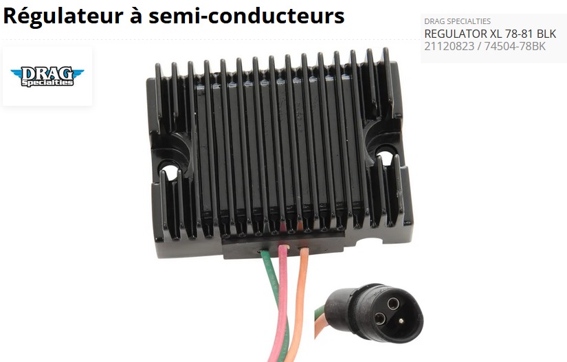 ref:2112-0823 REGULATEUR NOIR POUR Sportster XL de 1978 à 1981 TYPE OEM 74504-78 PAR DRAG SPECIALTIES