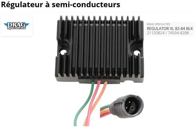 ref:2112-0824 REGULATEUR NOIR POUR Sportster XL de 1982 à 1984 TYPE OEM 74504-82 PAR DRAG SPECIALTIES