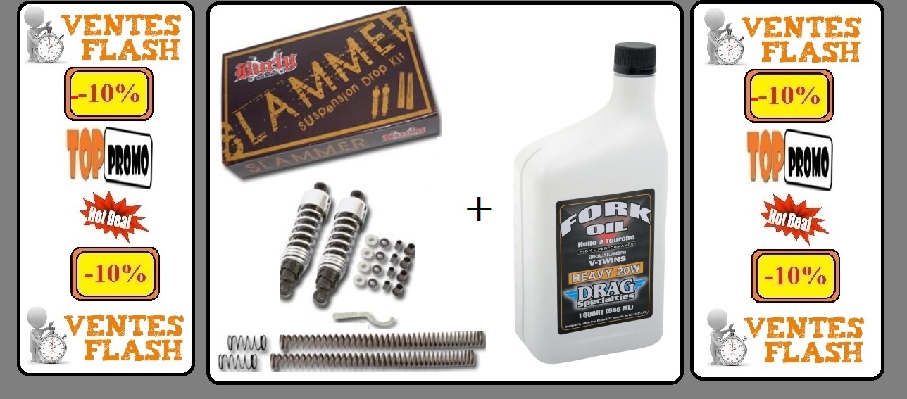 • Le kit d'abaissement complet inclut les amortisseurs avec ressorts et couvercles chromés (sauf indication contraire) et les ressorts de fourche