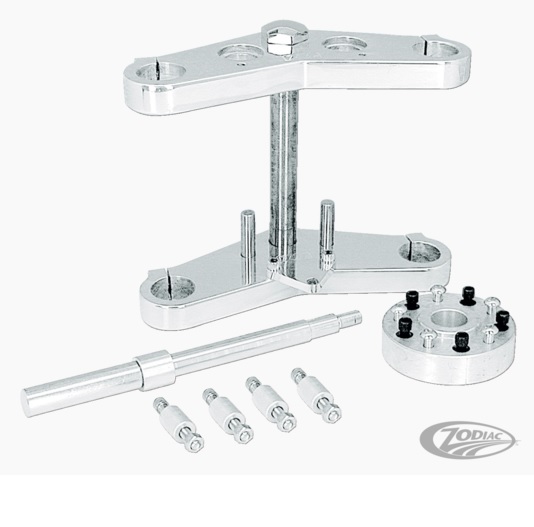 Les tés Rev"O"lution II de Zodiac sont fabriqués en aluminium usiné d' 1" (25mm) d"épaisseur de qualité aviation. Les plaques supérieure et inférieure ont des bouts arrondis par usinage pour un poids léger et un style élégant. Le kit comprend un étrier de phare à montage inférieur, un kit d'entretoise de disque et tout le matériel de montage nécessaire. Toutes les pièces en aluminium dans ce kit ont une finition usinée. Pour tous les modèles de FXR, Dyna et Sportster à fourche Showa de 39mm et à disque unique. Si vous avez un frein avant à double disque, vous aurez besoin d'une entretoise de disque supplémentaire ref:733110