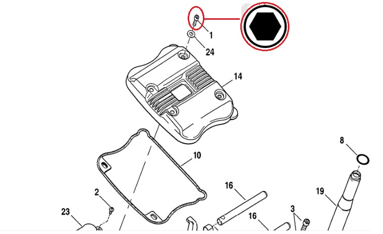 vis de couvre culasse xl sportster 1/4"-20 x 7/8" UNC Hex ref:882/190536