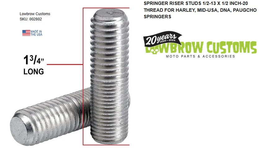 -Ces plots de riser à ressort de 1 à 3/4 pouces de long ont un fil fin de 1/2"-20 sur la moitié de la longueur (7/8 pouce) pour fileter dans votre fourche, et 1/2"-13 fil grossier sur le reste (7/8 pouce) pour fileter dans vos risers.